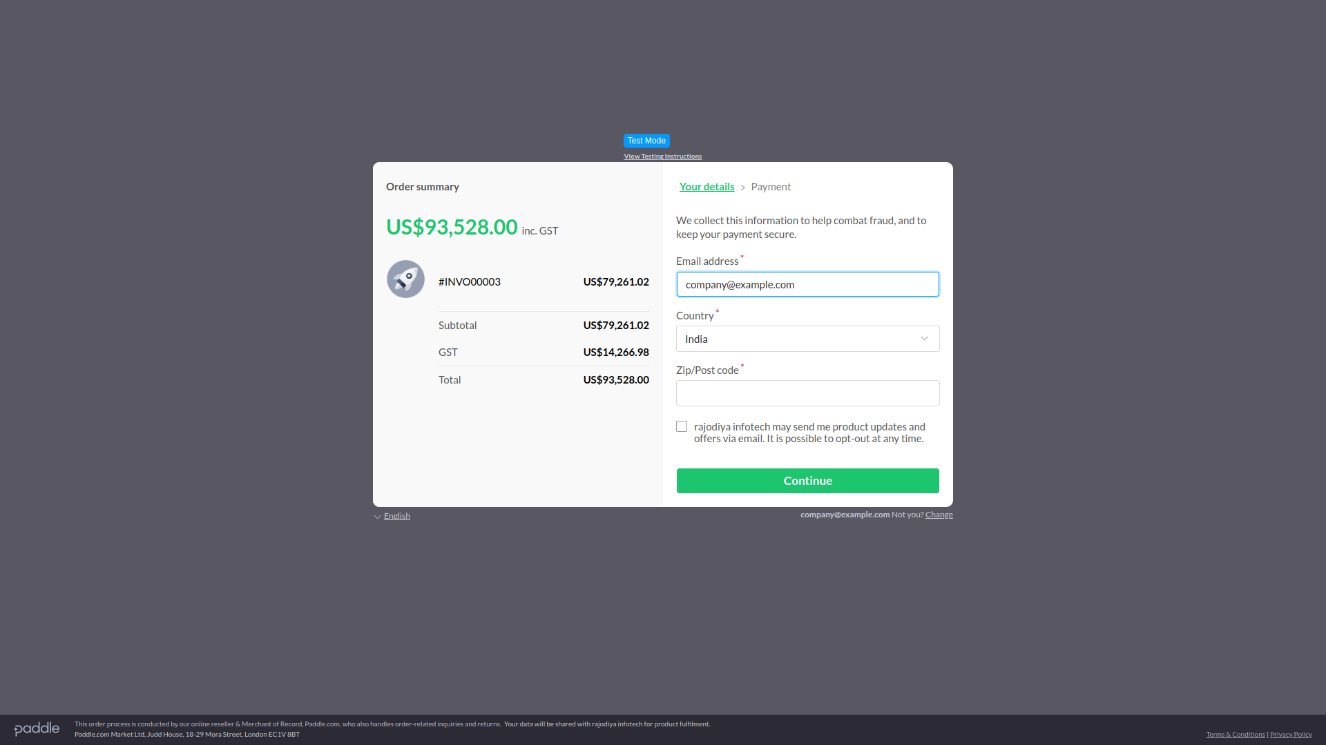 Using paddle payment gateway you can easily pay money in invoice module ,sales invoice module ,Retainer module and Plan purchase. Also we provide order summary after payment that`s why you can easily see your payment transaction any time.