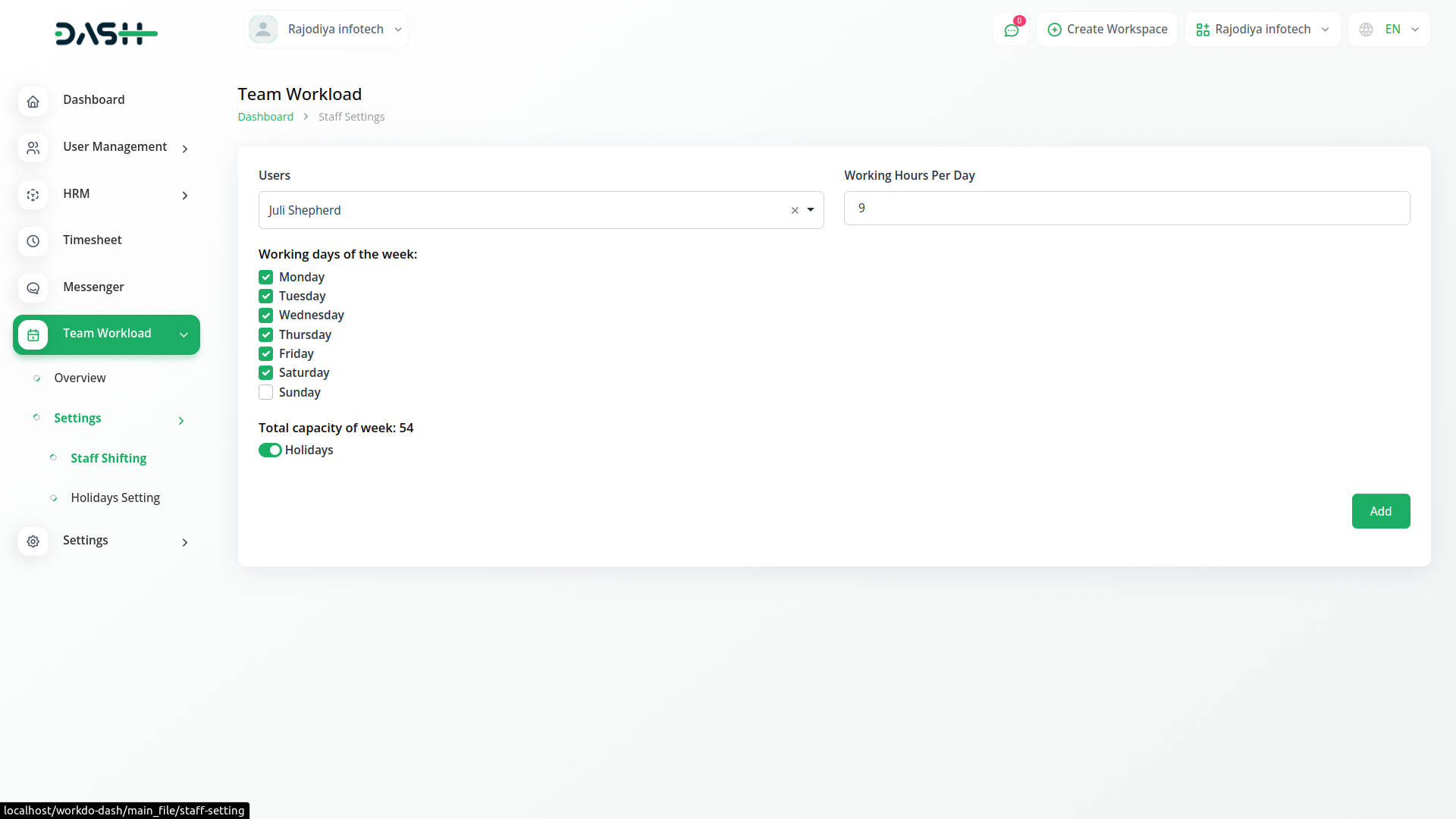 With the Team Workload module, we can find out the total number of hours an employee has the ability to work in a week and the total number of hours worked in these occupations.