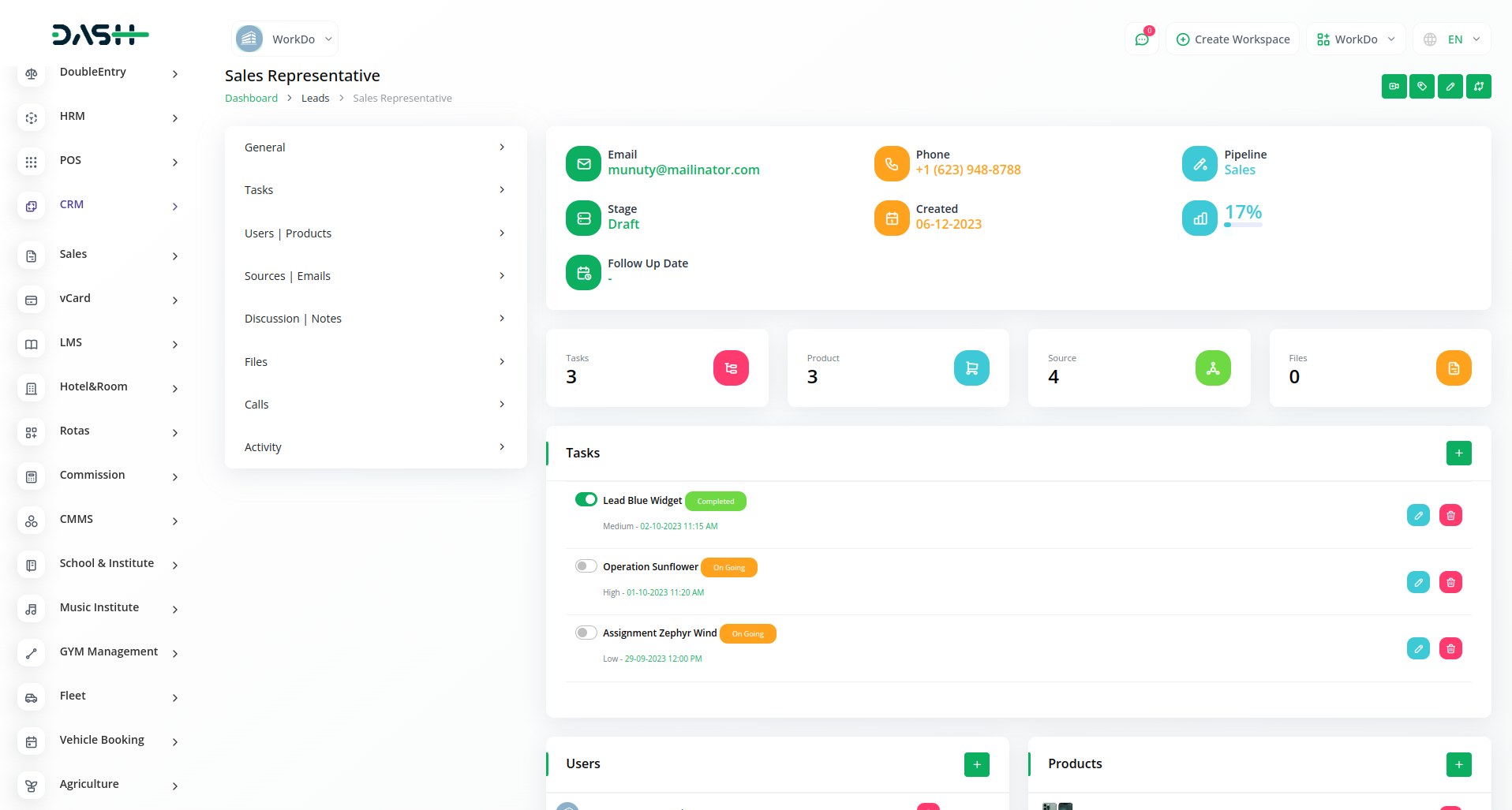 Get an actionable analysis of all your leads, deals, users, invoices, and products - in one interactive dashboard. Create and implement effective business plans, set a maximum number of deals, payment options and do so much more.